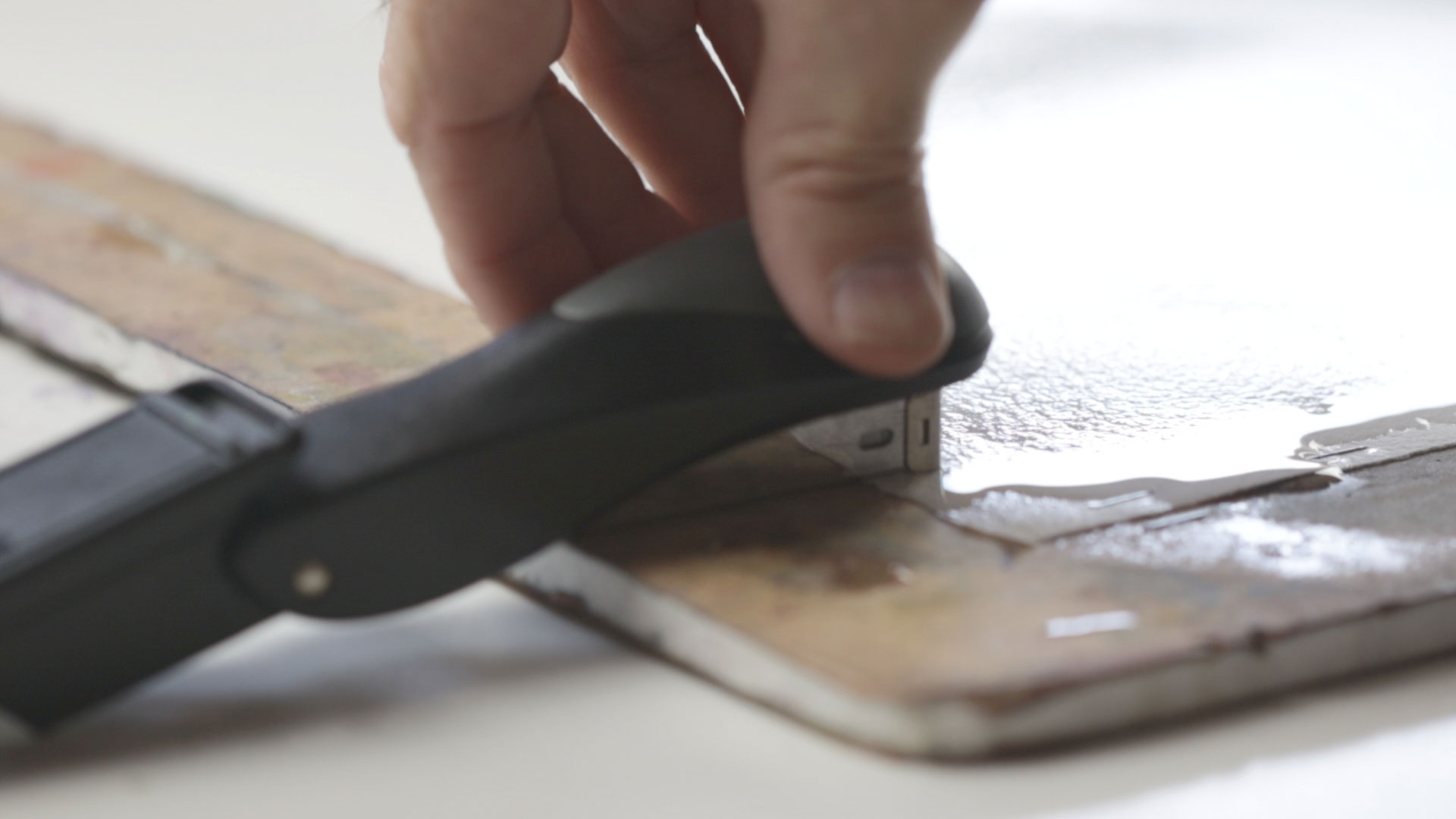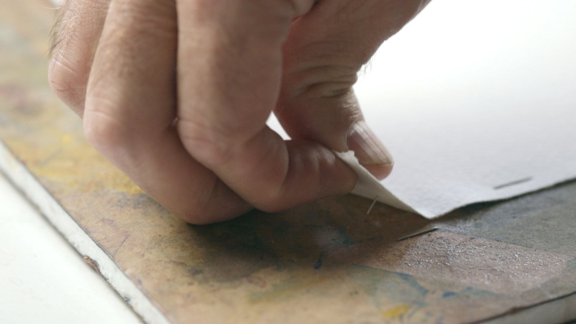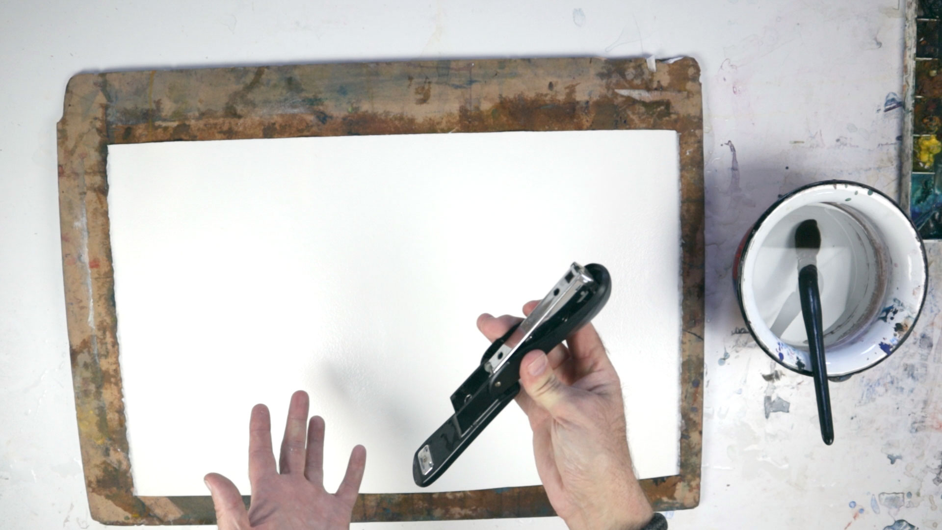 This is the best part and another reason gator board is so good - when you have finished your painting (and it is dry), it is very simple to simply pick the staples out of the board. If you have used good paper and it is dry you can even grab the corner of your paper and gently pull up. The staples will simply pop out with the paper. Then remove the staples from the paper.