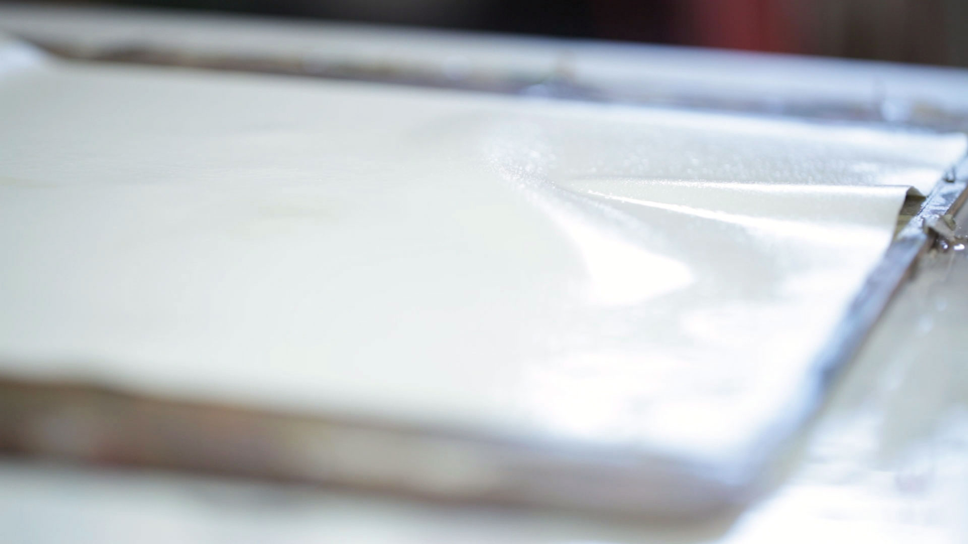 Once you have staples around the edge of the entire sheet, you just let it dry, or you can dry it with a hair dryer.
