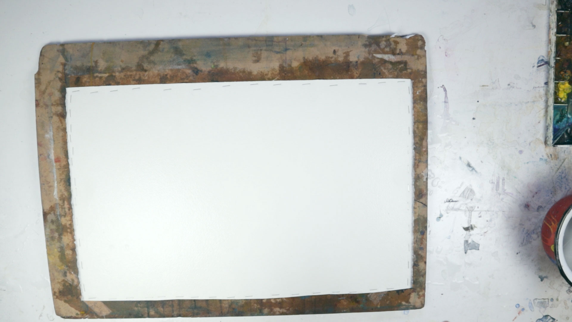 TIP: If you love a lovely white edge around your painting, just put strips of masking tape around your painting (covering the staples).